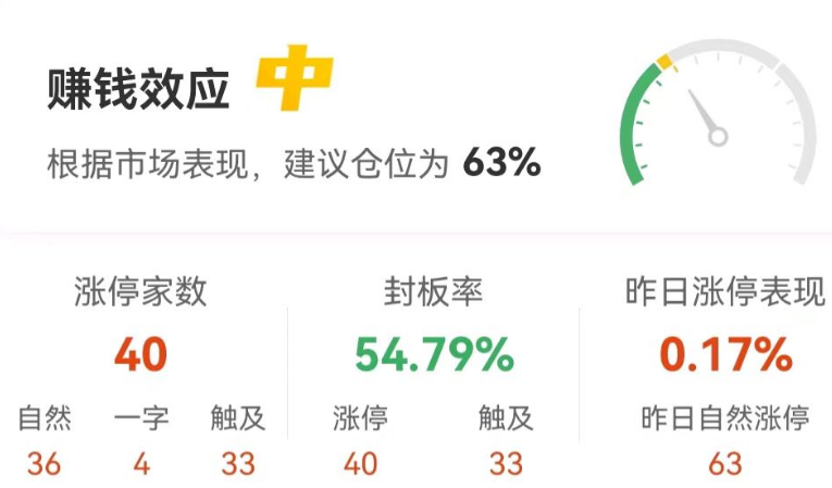 40股涨停封板率54.79%