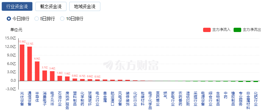 行业资金流向:12.8亿元净流入光伏设备